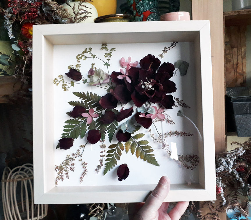 Je peux aussi faire sécher les fleurs de votre bouquet afin d'en garder un souvenir durable sous verre.