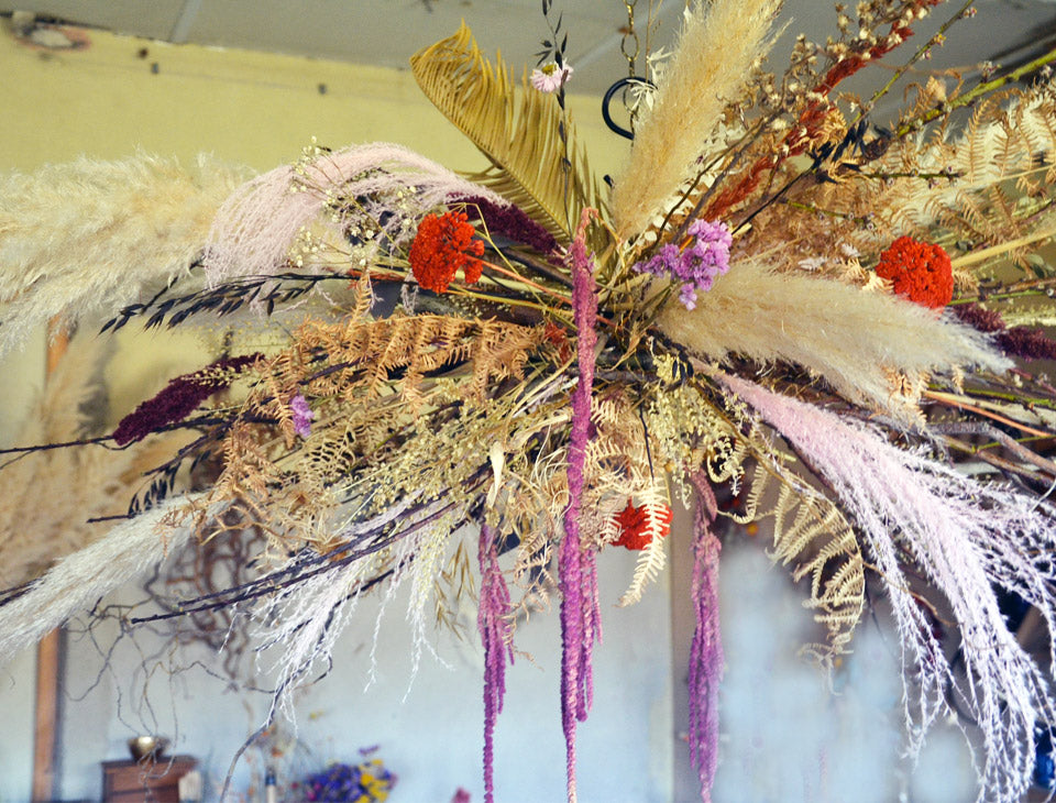 Les fleurs séchées se présentent aussi dans des décors muraux ou suspendus au plafond, pour un décor vertigineux et très original. Dans votre salon, une cage d'escalier, une chambre...