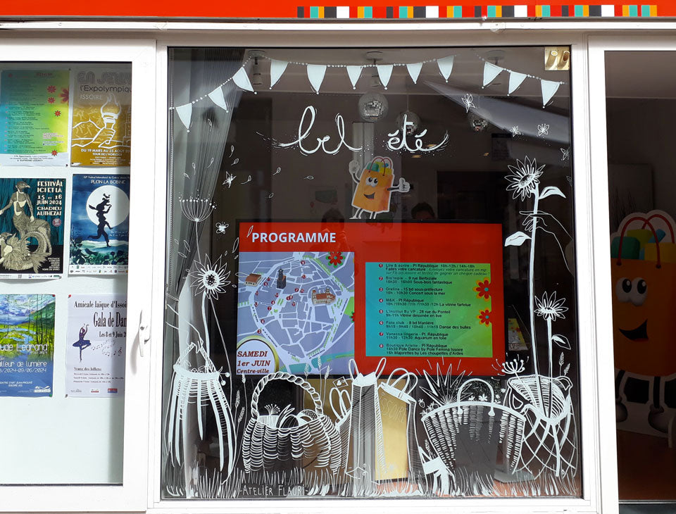 L’atelier Flauri vous propose une autre fleur de son bouquet de savoir-faire, l’illustration sur vitrines afin de vous apporter un outil de communication unique, original, et très personnalisé.